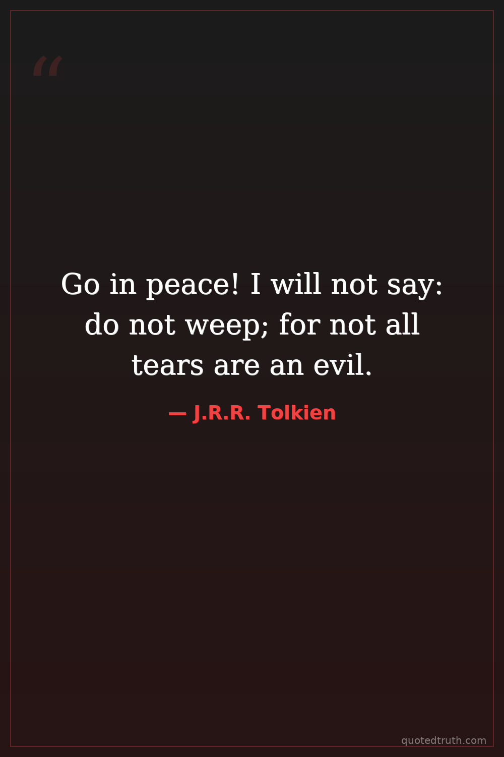 Go in peace! I will not say: do not weep; for not all tears are an evil.