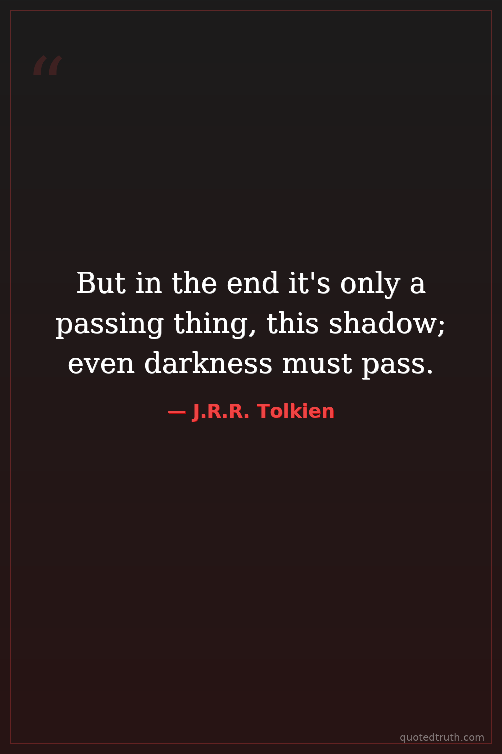 But in the end it's only a passing thing, this shadow; even darkness must pass.
