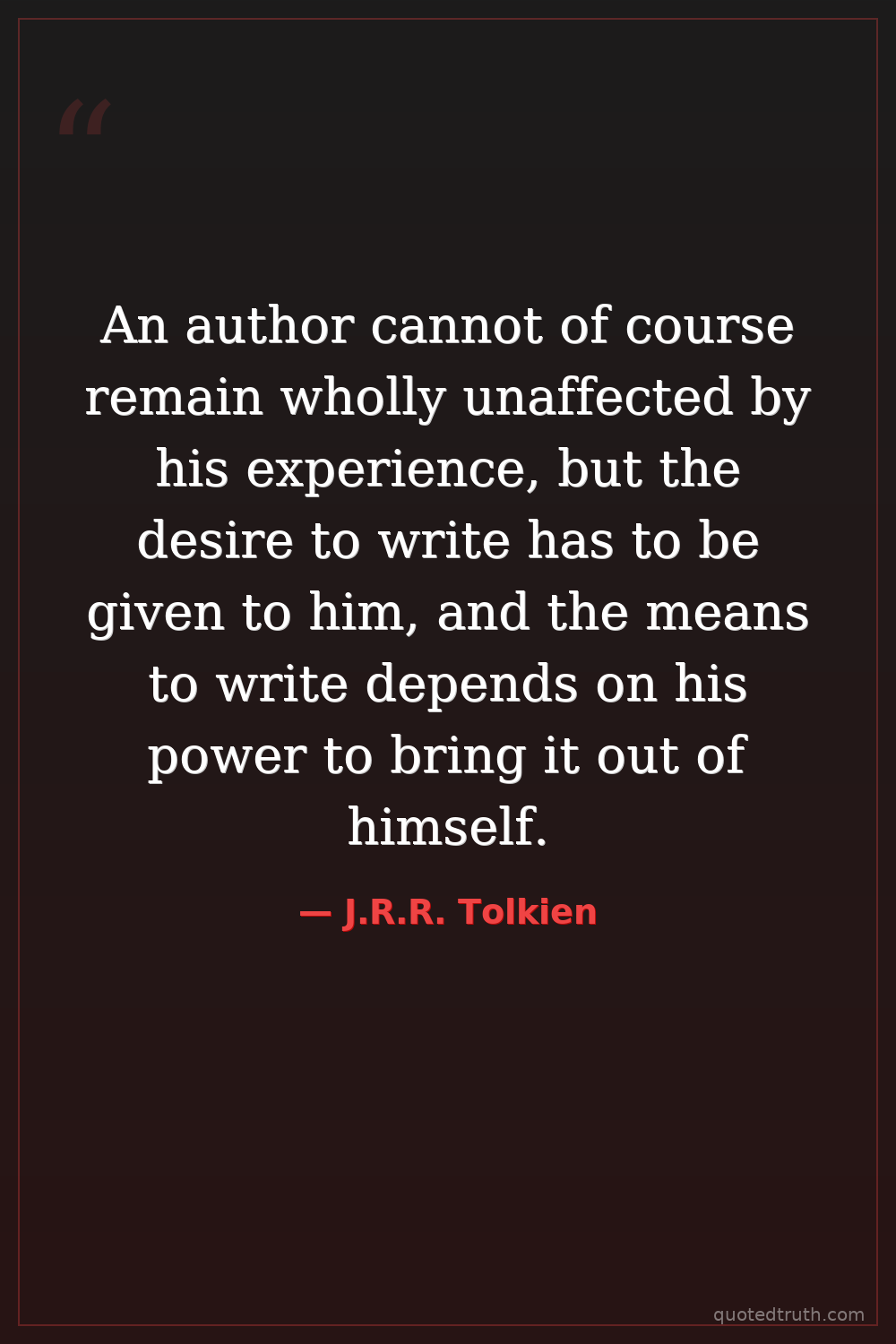 An author cannot of course remain wholly unaffected by his experience, but the desire to write has to be given to him, and the means to write depends on his power to bring it out of himself.
