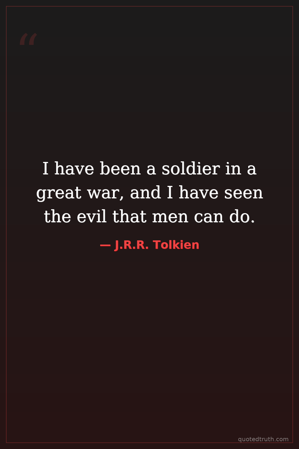 I have been a soldier in a great war, and I have seen the evil that men can do.
