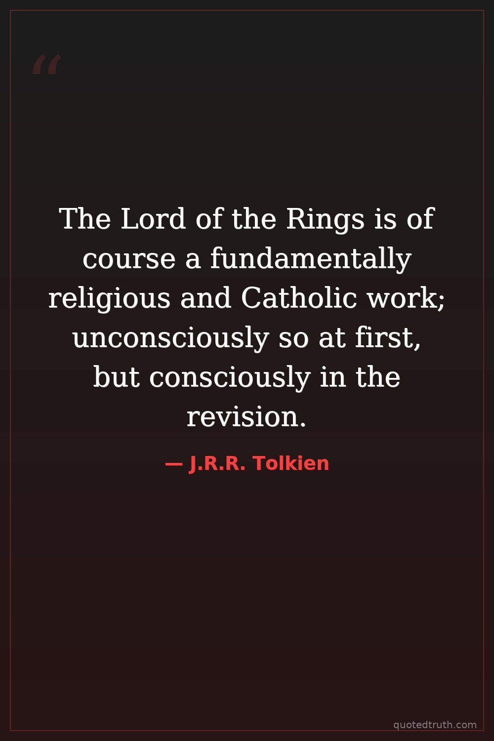 The Lord of the Rings is of course a fundamentally religious and Catholic work; unconsciously so at first, but consciously in the revision.