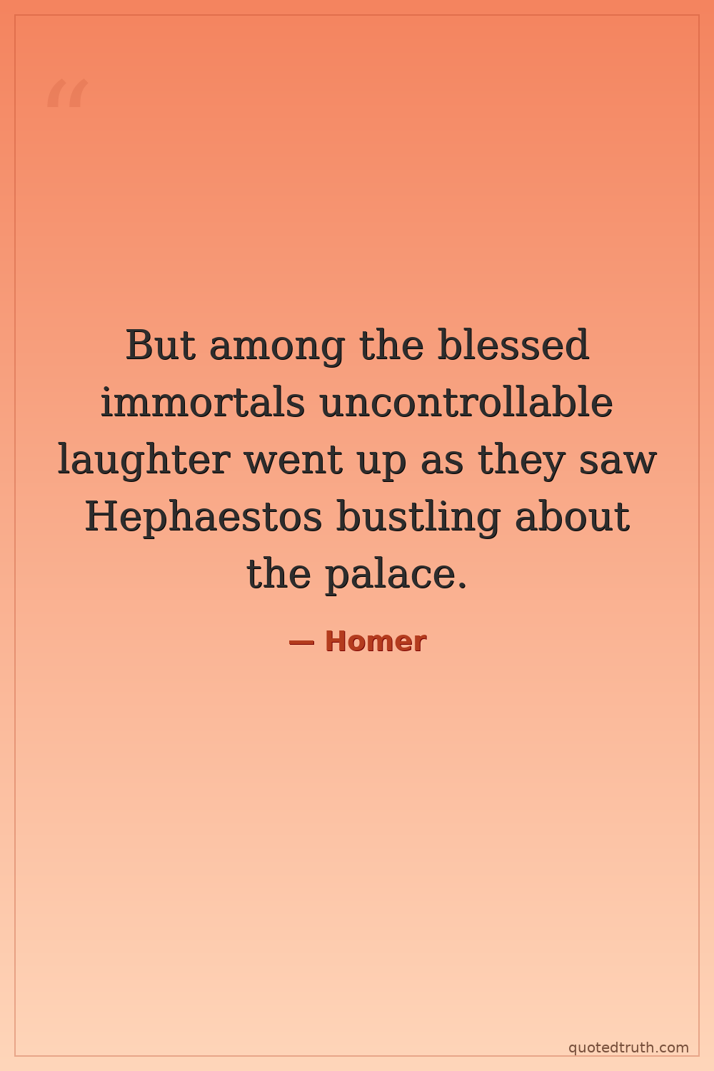 But among the blessed immortals uncontrollable laughter went up as they saw Hephaestos bustling about the palace.