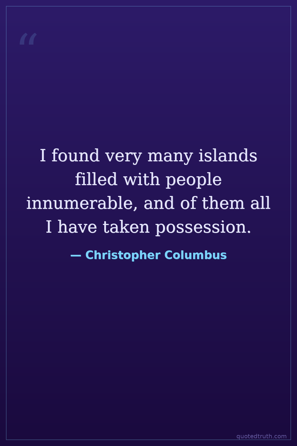 I found very many islands filled with people innumerable, and of them all I have taken possession.