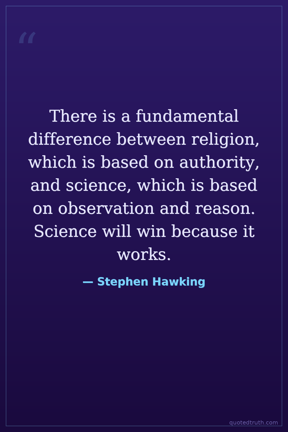 There is a fundamental difference between religion, which is based on authority, and science, which is based on observation and reason. Science will win because it works.