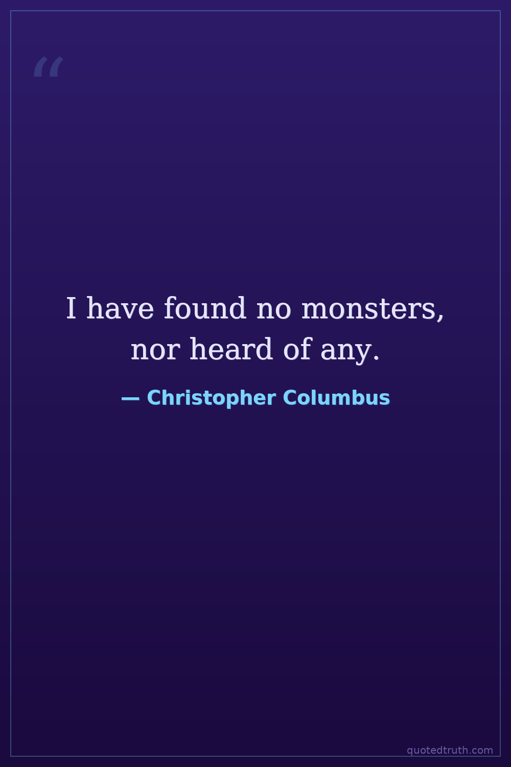 Controversial"And I say that Your Highnesses ought to determine to make them Christians, for I believe that if they begin, in a short time they will be finished, and will have great revenues and dominion, and all t…"