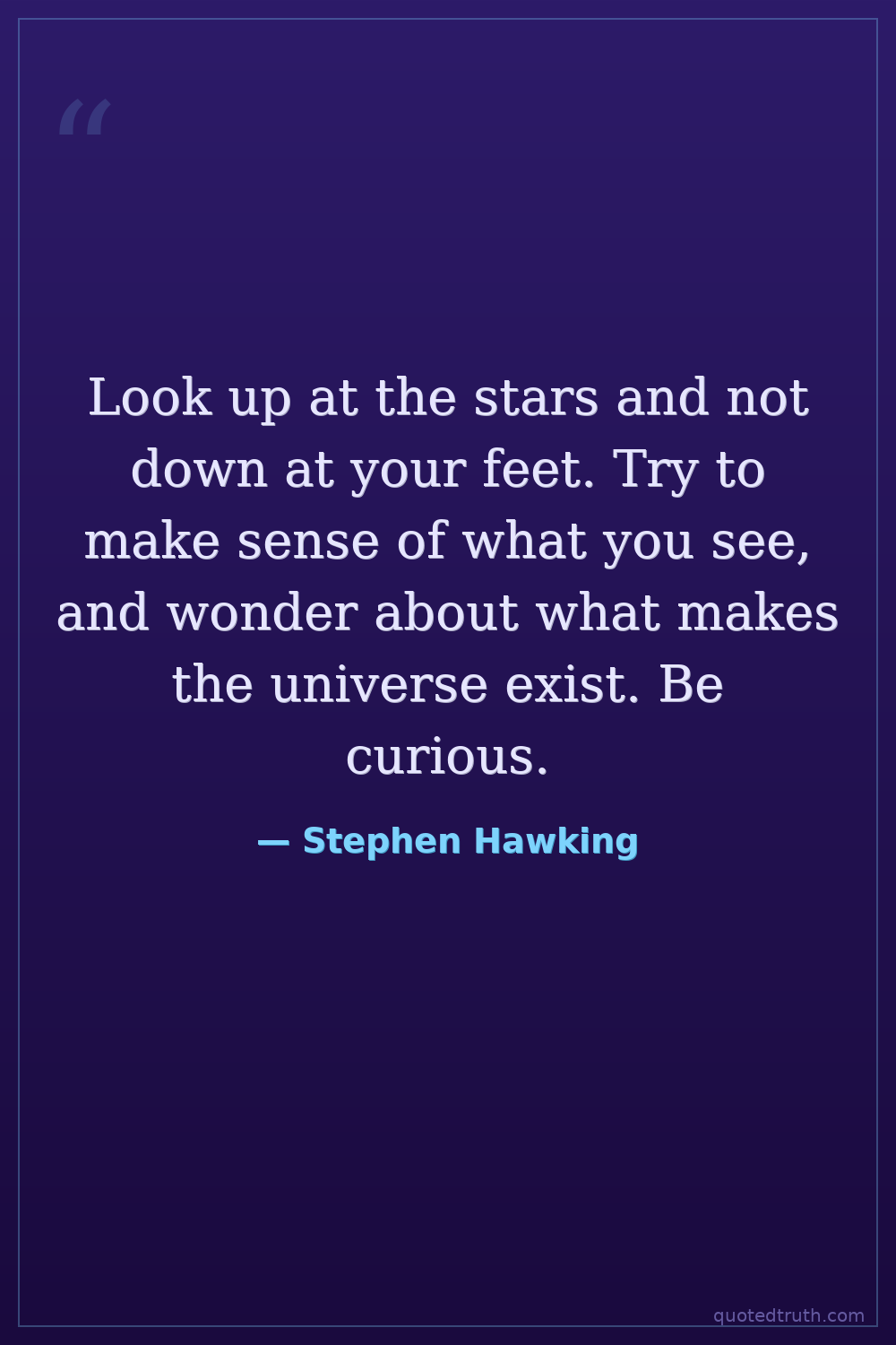 Look up at the stars and not down at your feet. Try to make sense of what you see, and wonder about what makes the universe exist. Be curious.