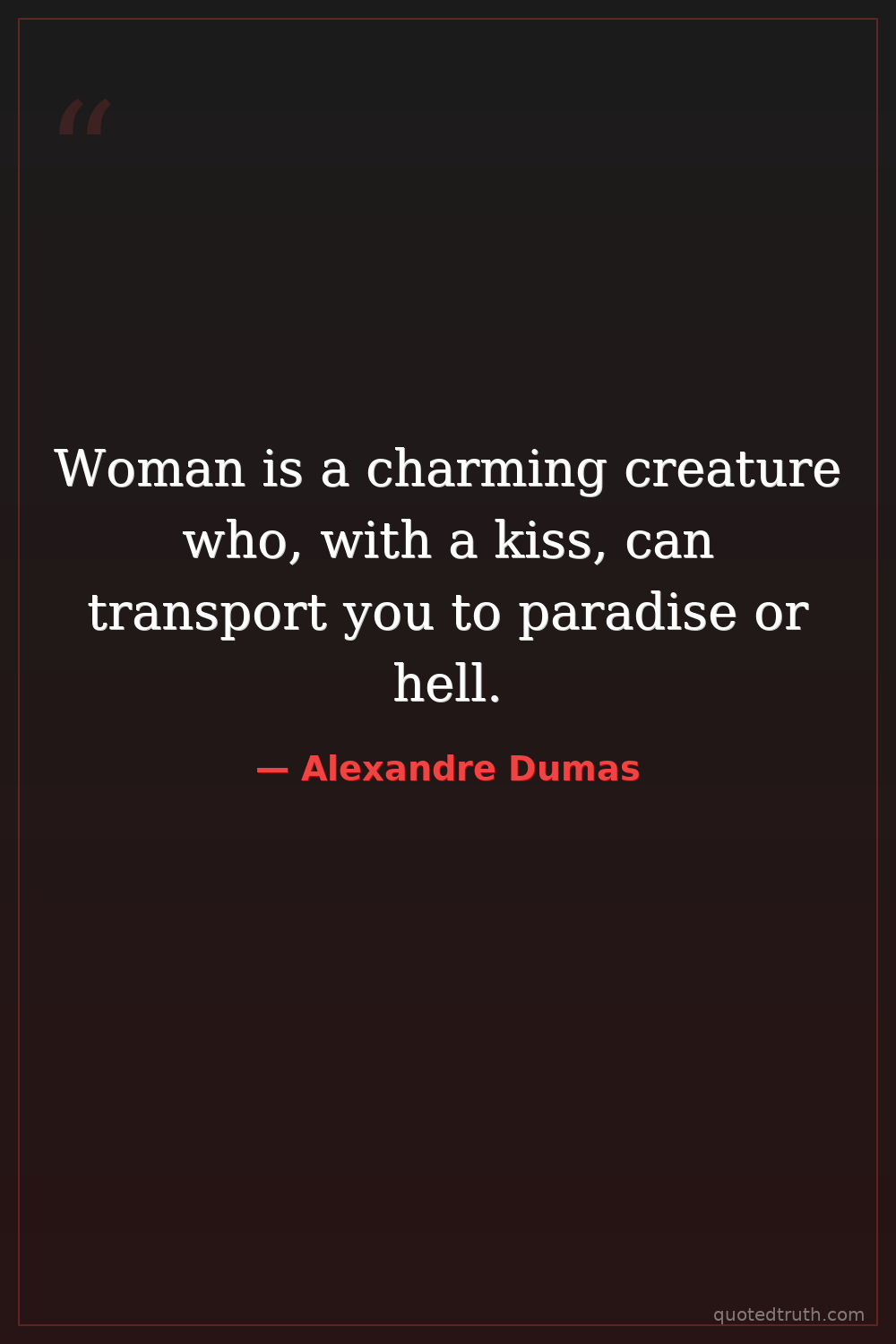 Woman is a charming creature who, with a kiss, can transport you to paradise or hell.