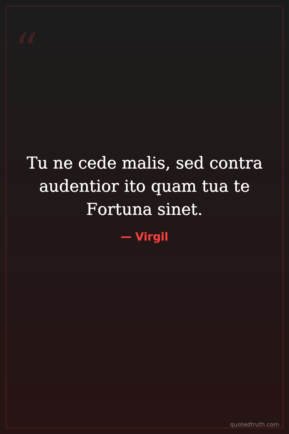 Tu ne cede malis, sed contra audentior ito quam tua te Fortuna sinet.