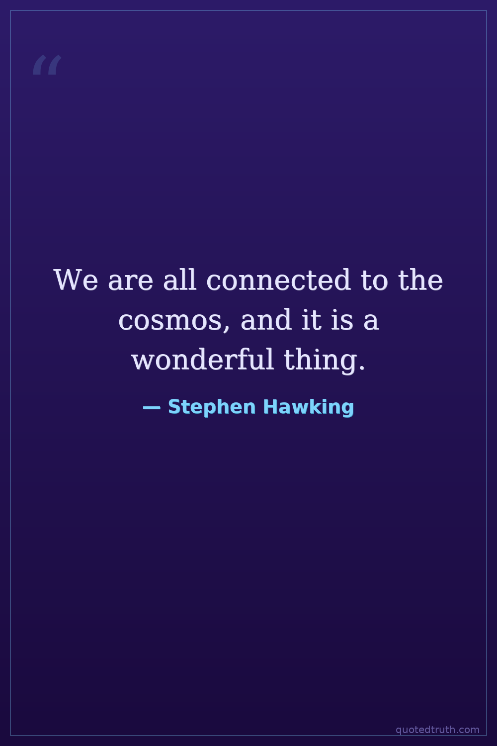 We are all connected to the cosmos, and it is a wonderful thing.