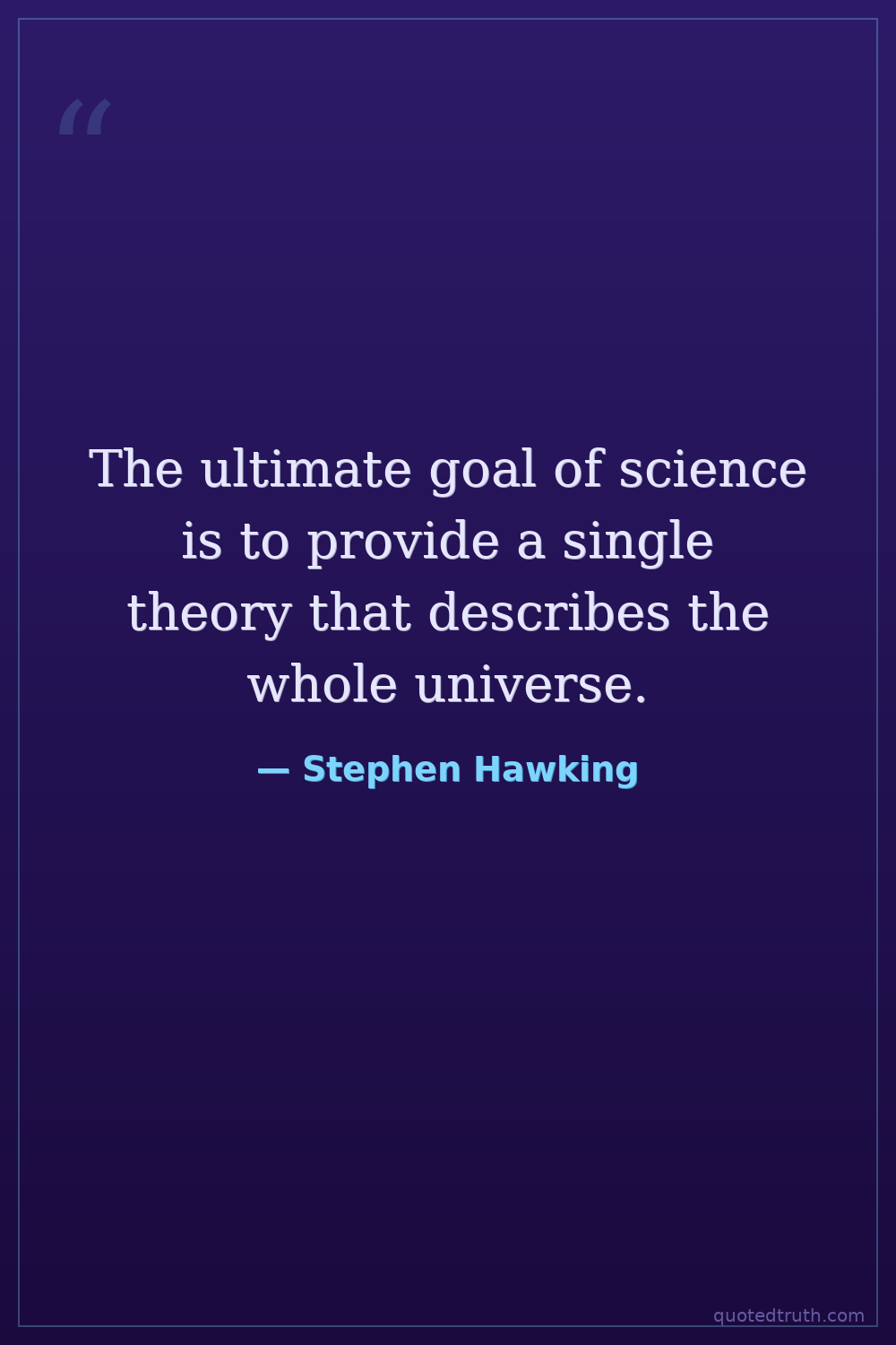 The ultimate goal of science is to provide a single theory that describes the whole universe.