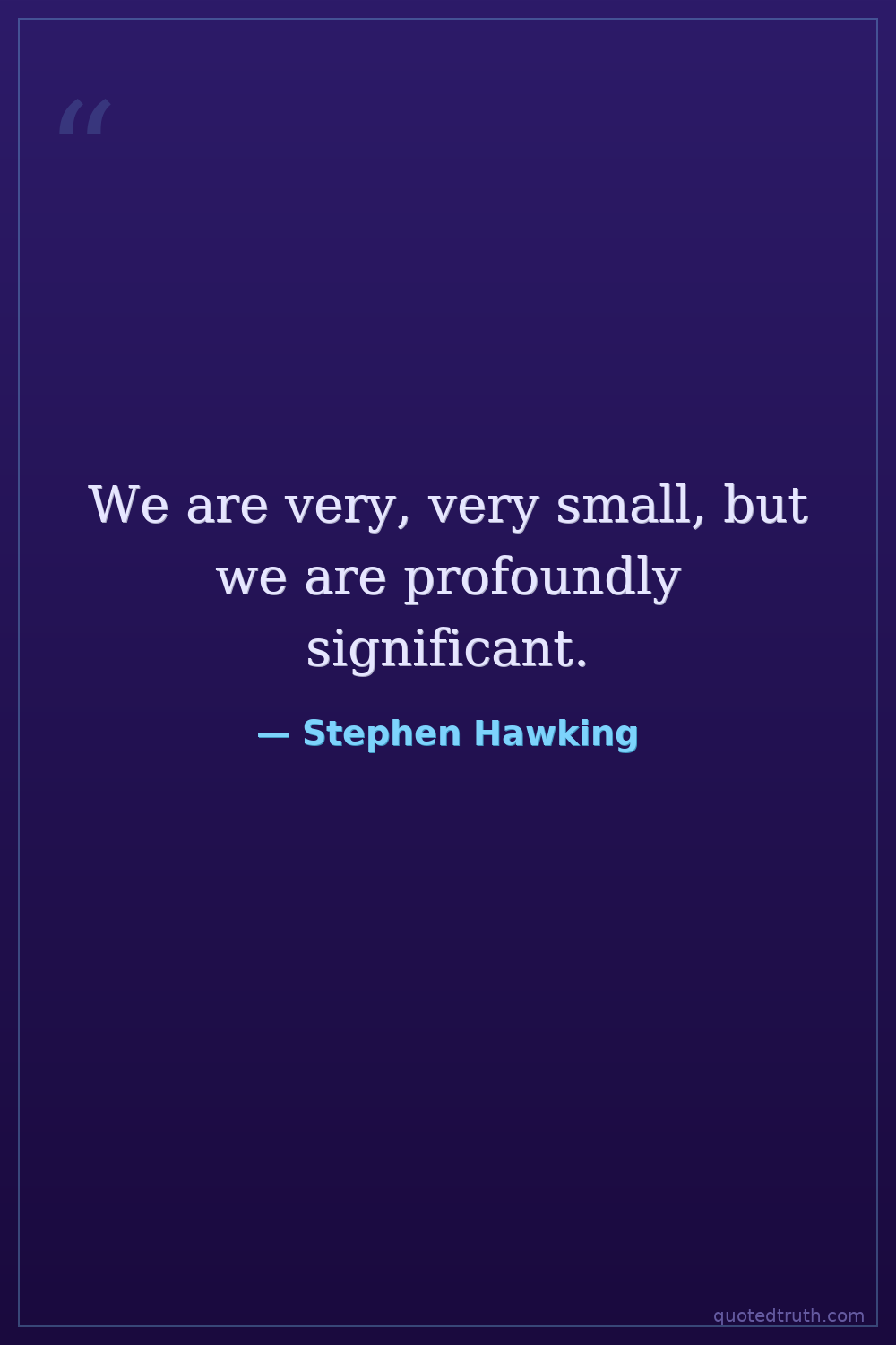 Humorous"The human race is a tiny speck in the vastness of space. But we are capable of great things."