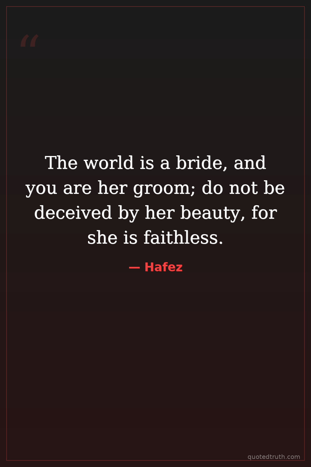 The world is a bride, and you are her groom; do not be deceived by her beauty, for she is faithless.
