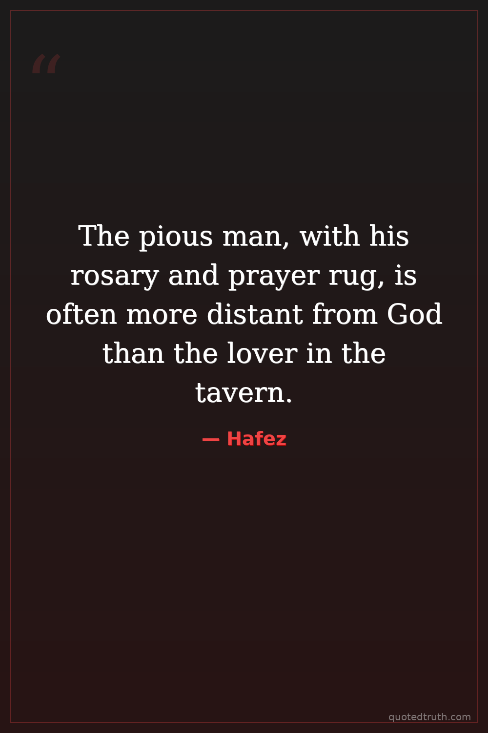 The pious man, with his rosary and prayer rug, is often more distant from God than the lover in the tavern.