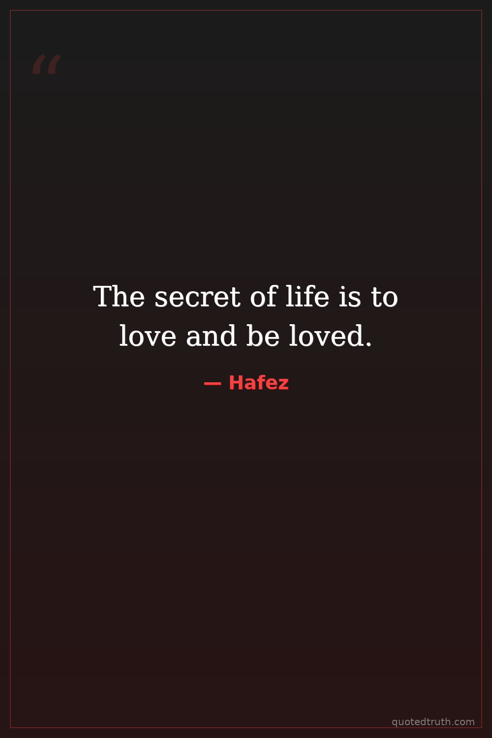 The secret of life is to love and be loved.