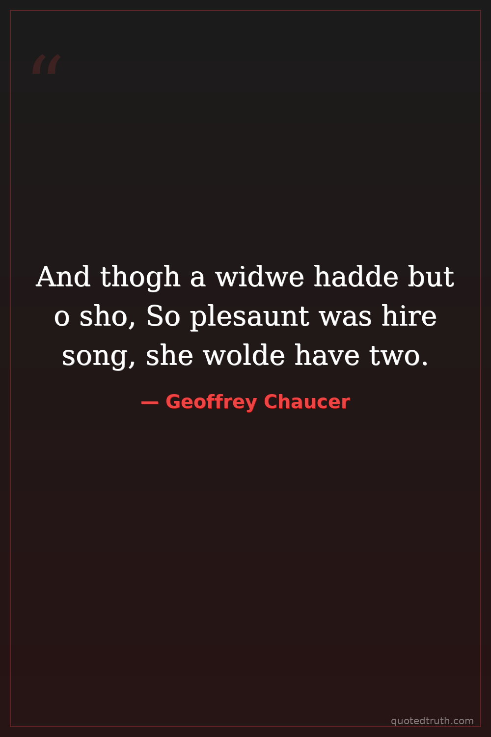 And thogh a widwe hadde but o sho, So plesaunt was hire song, she wolde have two.