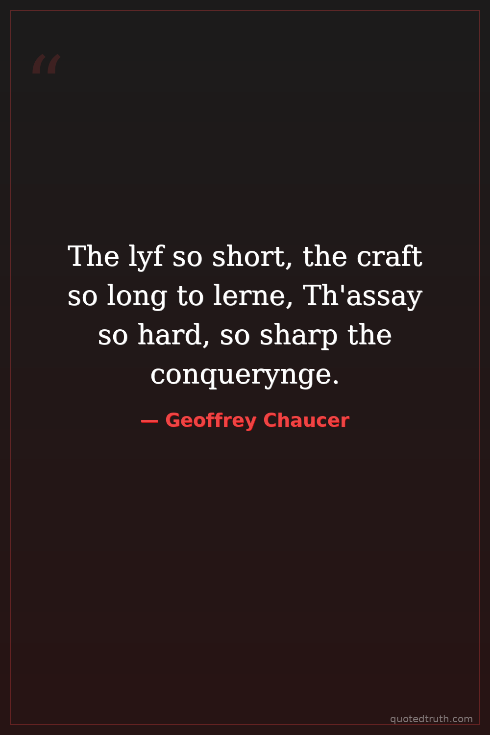 The lyf so short, the craft so long to lerne, Th'assay so hard, so sharp the conquerynge.