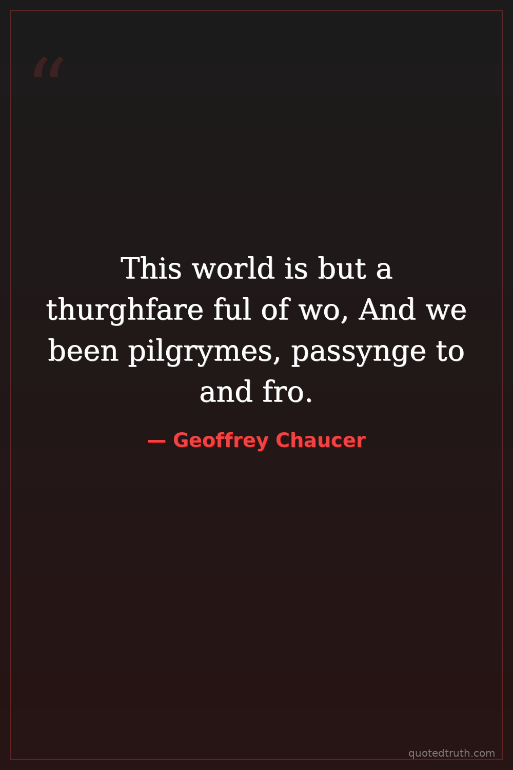This world is but a thurghfare ful of wo, And we been pilgrymes, passynge to and fro.