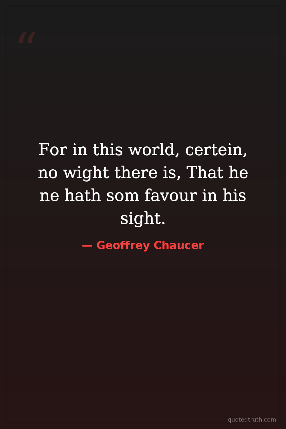 For in this world, certein, no wight there is, That he ne hath som favour in his sight.