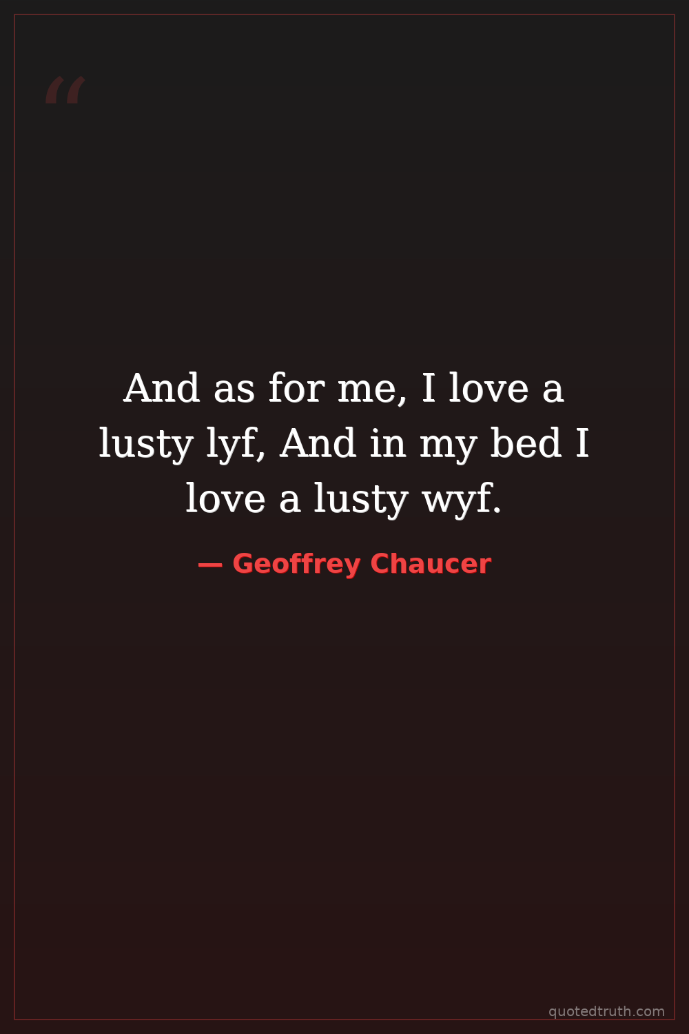 And as for me, I love a lusty lyf, And in my bed I love a lusty wyf.