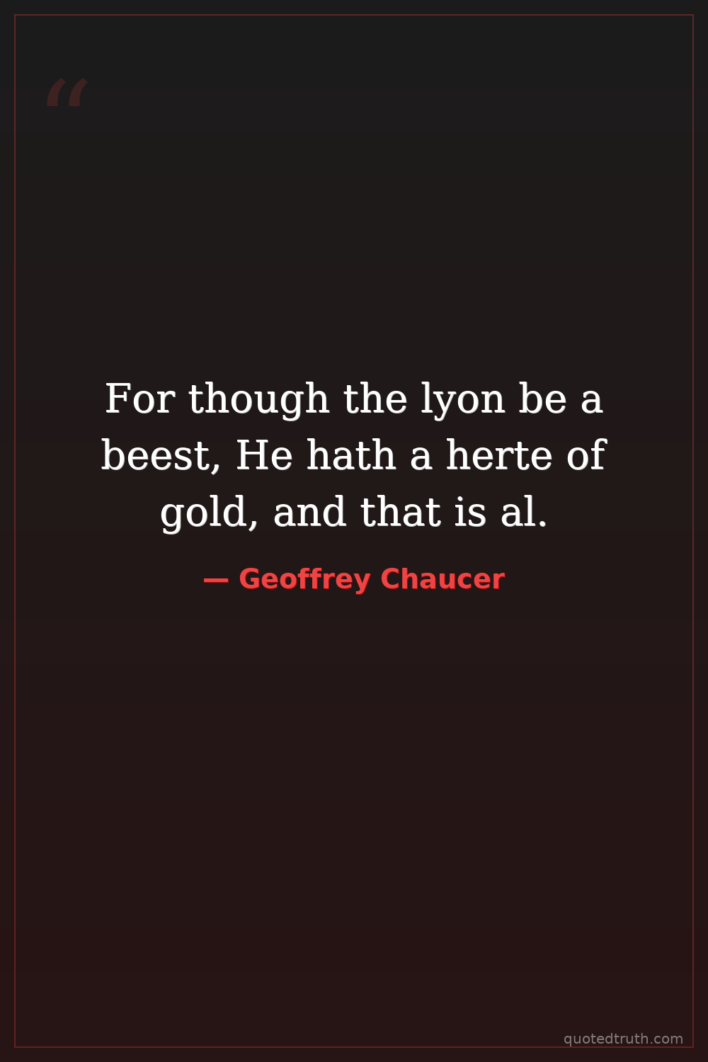 For though the lyon be a beest, He hath a herte of gold, and that is al.