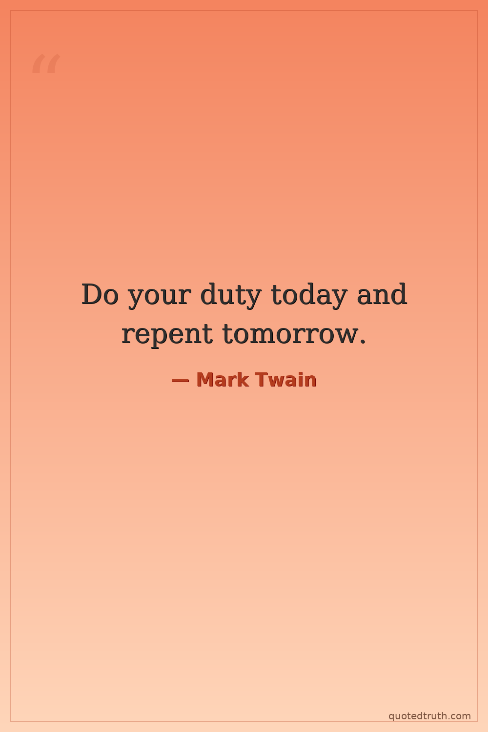 Do your duty today and repent tomorrow.