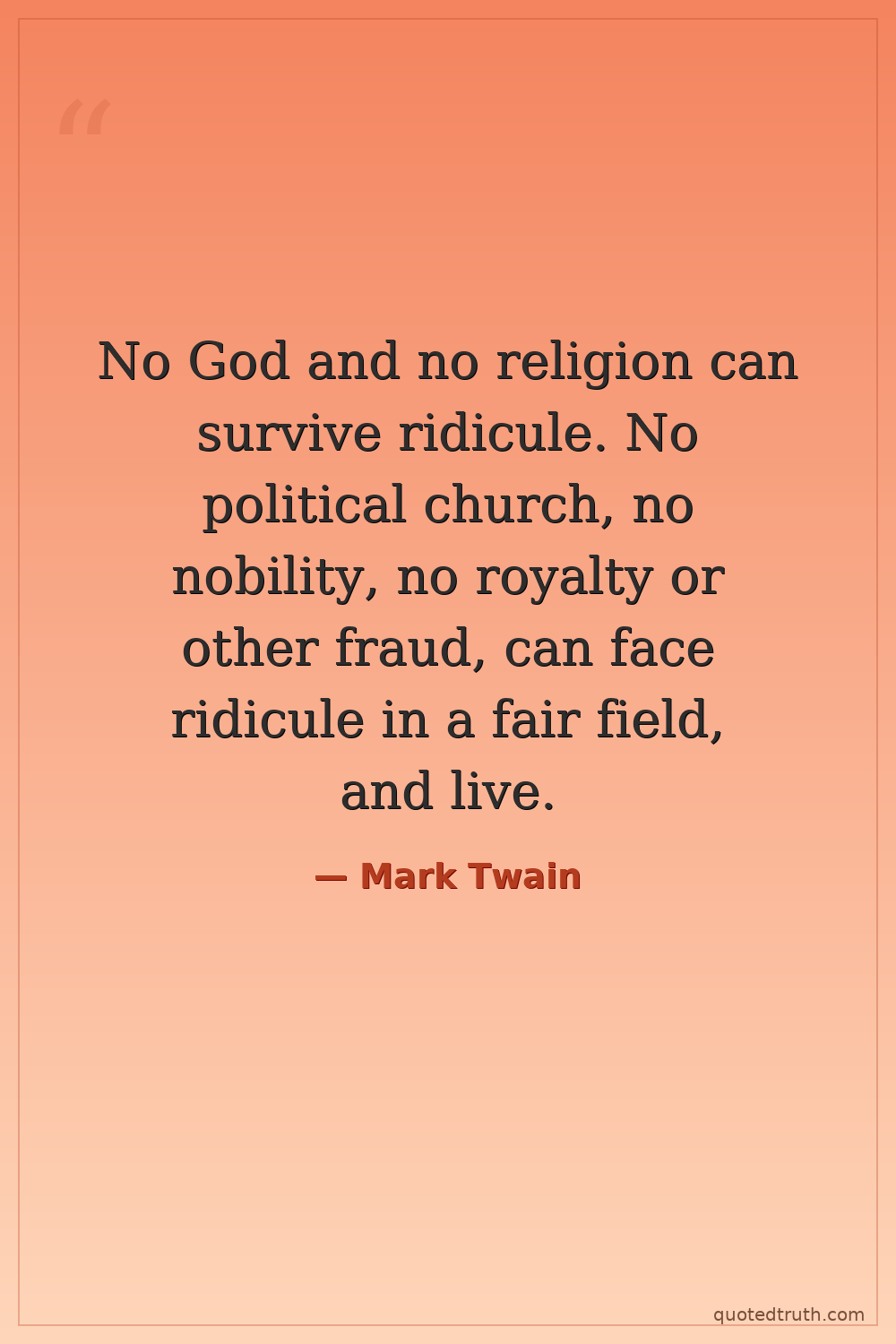 No God and no religion can survive ridicule. No political church, no nobility, no royalty or other fraud, can face ridicule in a fair field, and live.