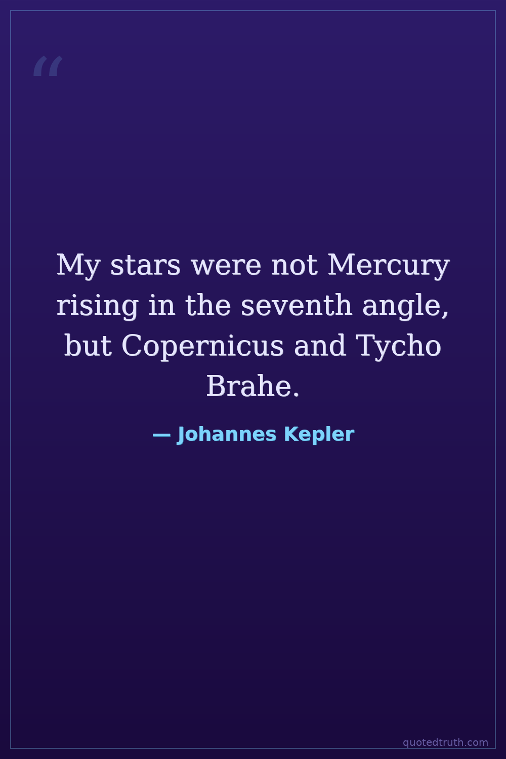 My stars were not Mercury rising in the seventh angle, but Copernicus and Tycho Brahe.