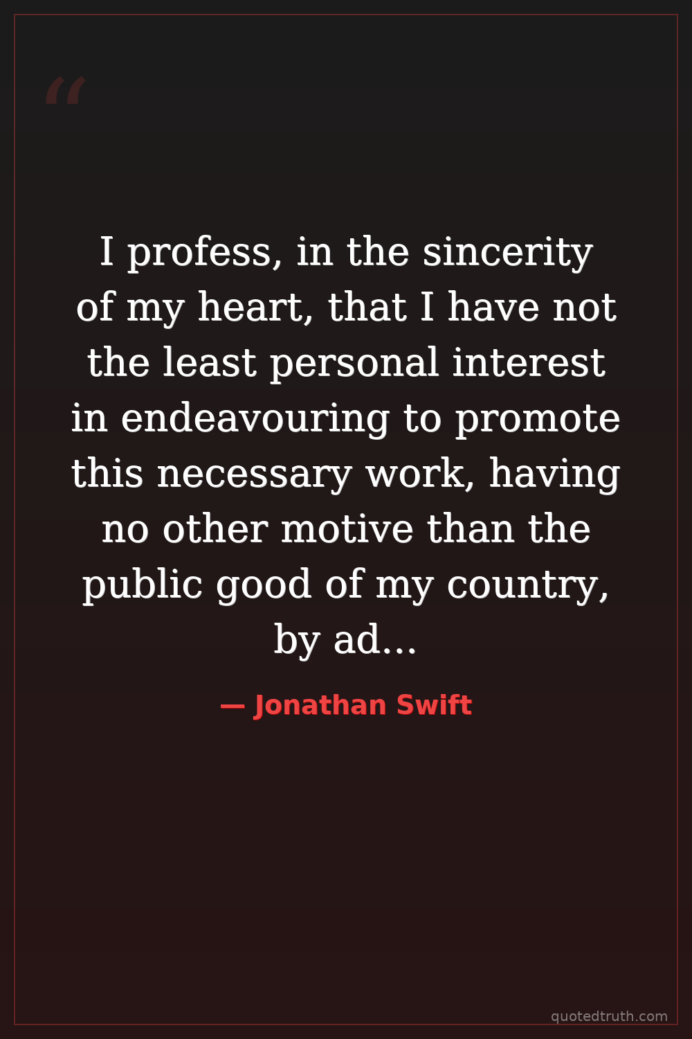 I profess, in the sincerity of my heart, that I have not the least personal interest in endeavouring to promote this necessary work, having no other motive than the public good of my country, by advancing our trade, providing for infants, relieving the poor, and giving some pleasure to the rich.