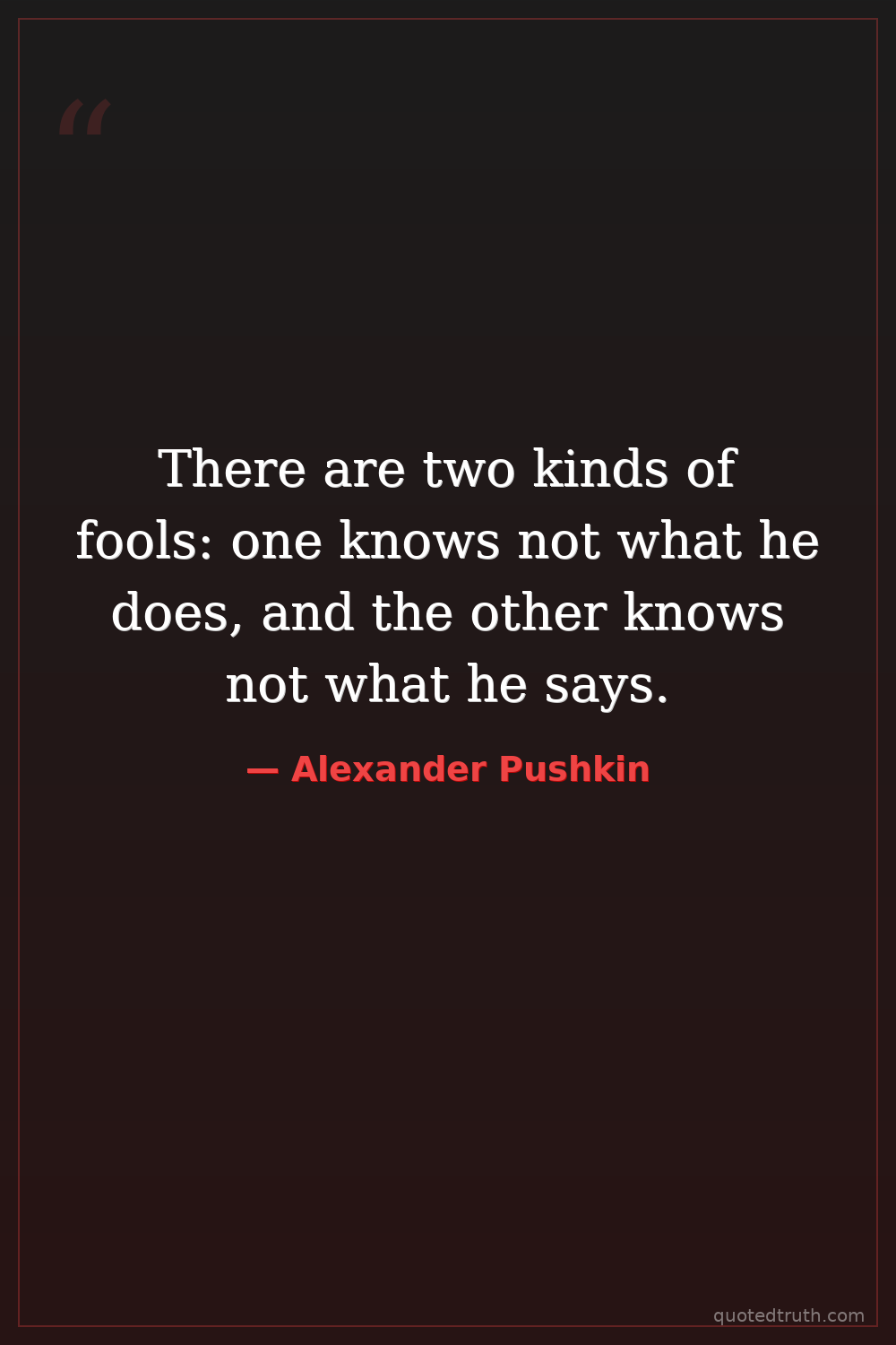 There are two kinds of fools: one knows not what he does, and the other knows not what he says.
