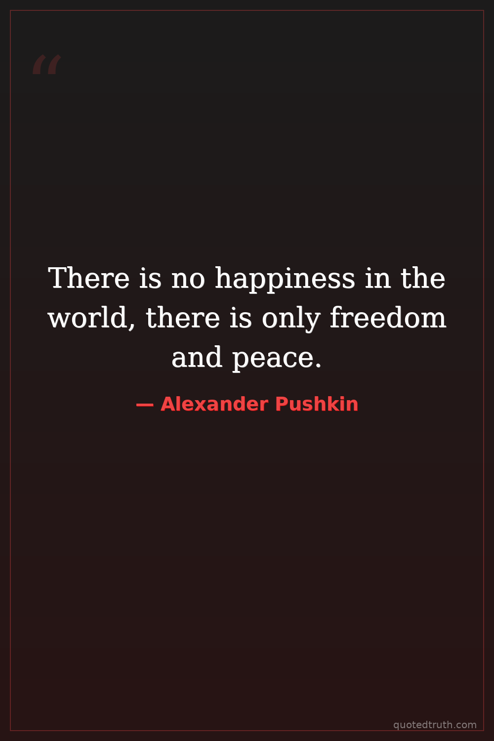 There is no happiness in the world, there is only freedom and peace.