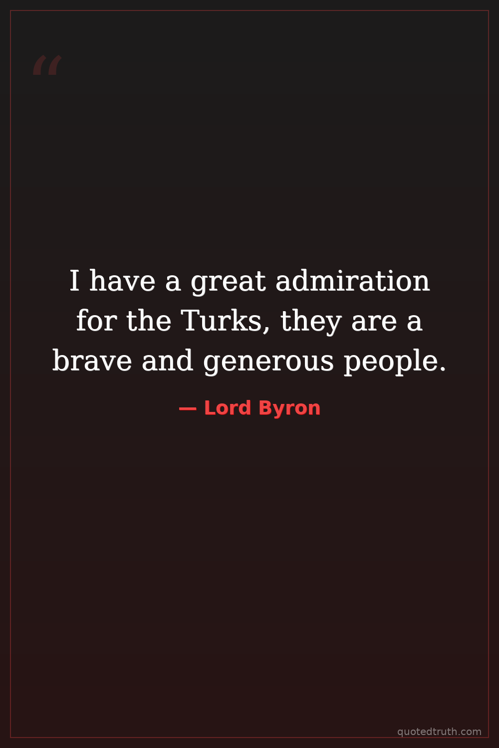 I have a great admiration for the Turks, they are a brave and generous people.