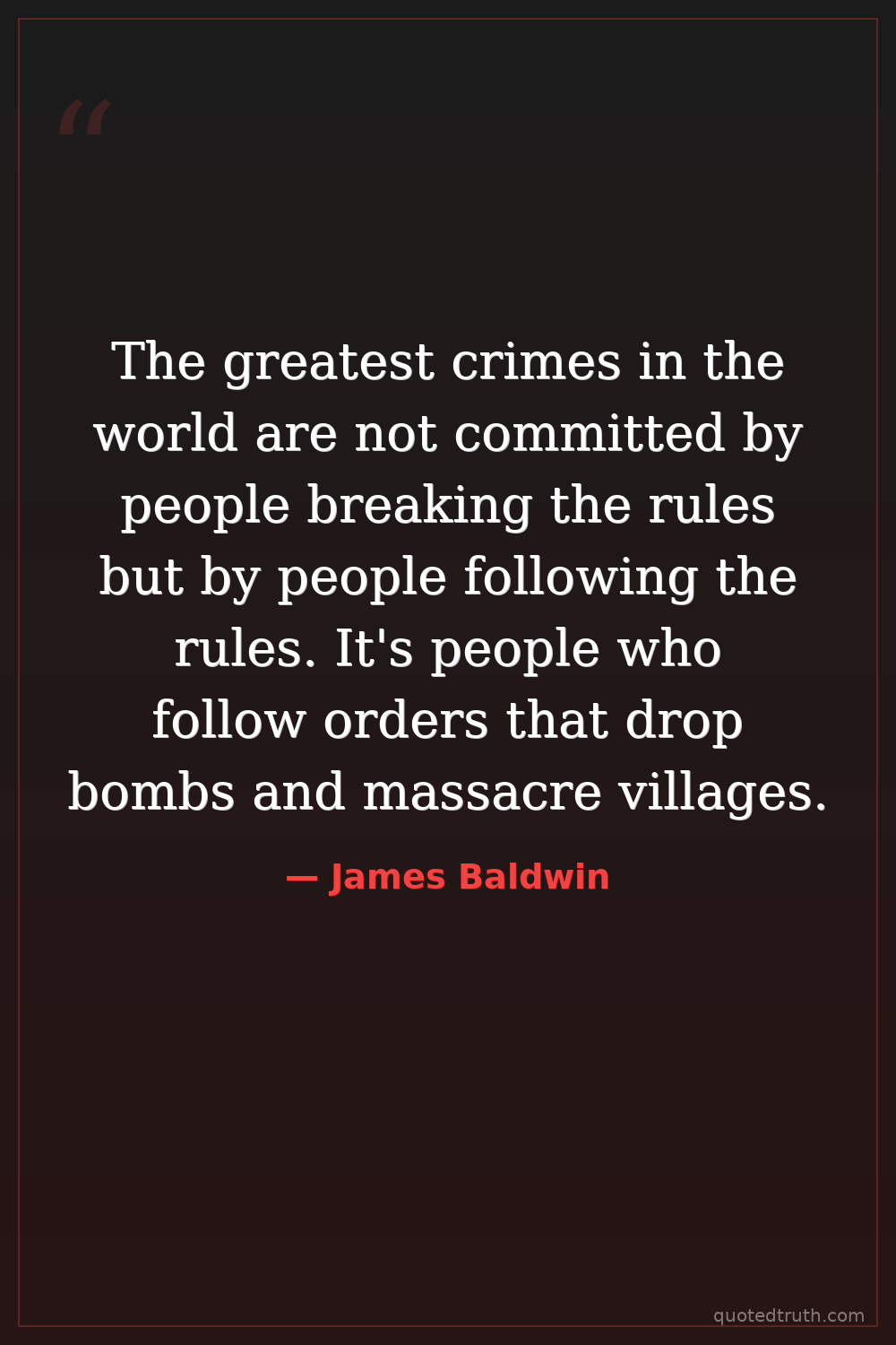The greatest crimes in the world are not committed by people breaking the rules but by people following the rules. It's people who follow orders that drop bombs and massacre villages.