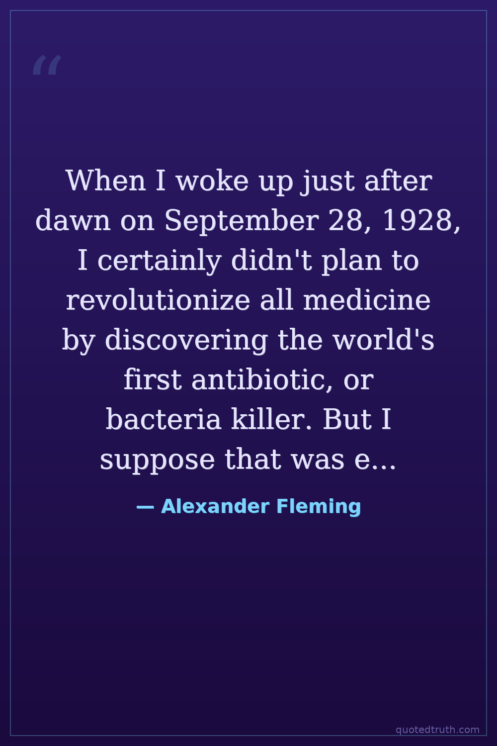 When I woke up just after dawn on September 28, 1928, I certainly didn't plan to revolutionize all medicine by discovering the world's first antibiotic, or bacteria killer. But I suppose that was exactly what I did.