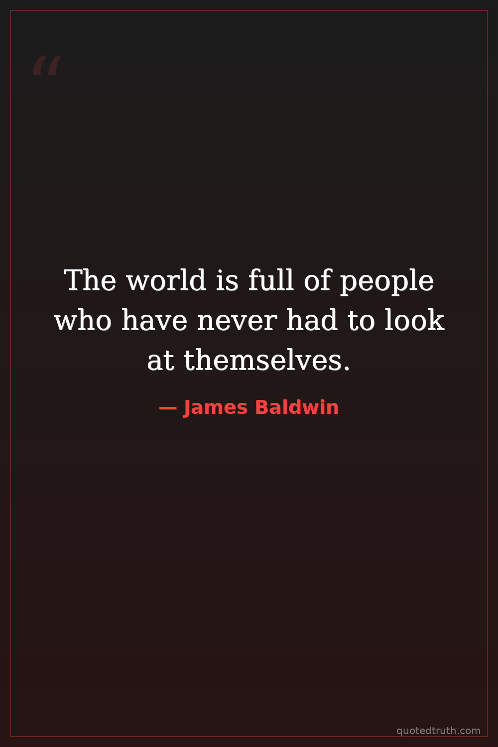 The world is full of people who have never had to look at themselves.