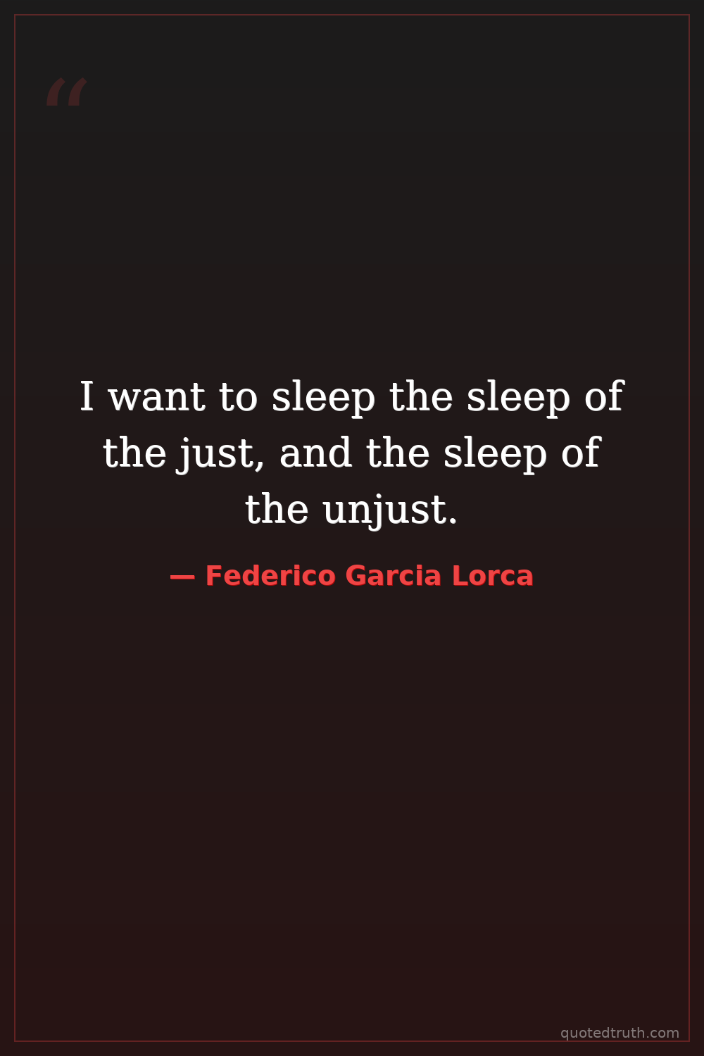 I want to sleep the sleep of the just, and the sleep of the unjust.