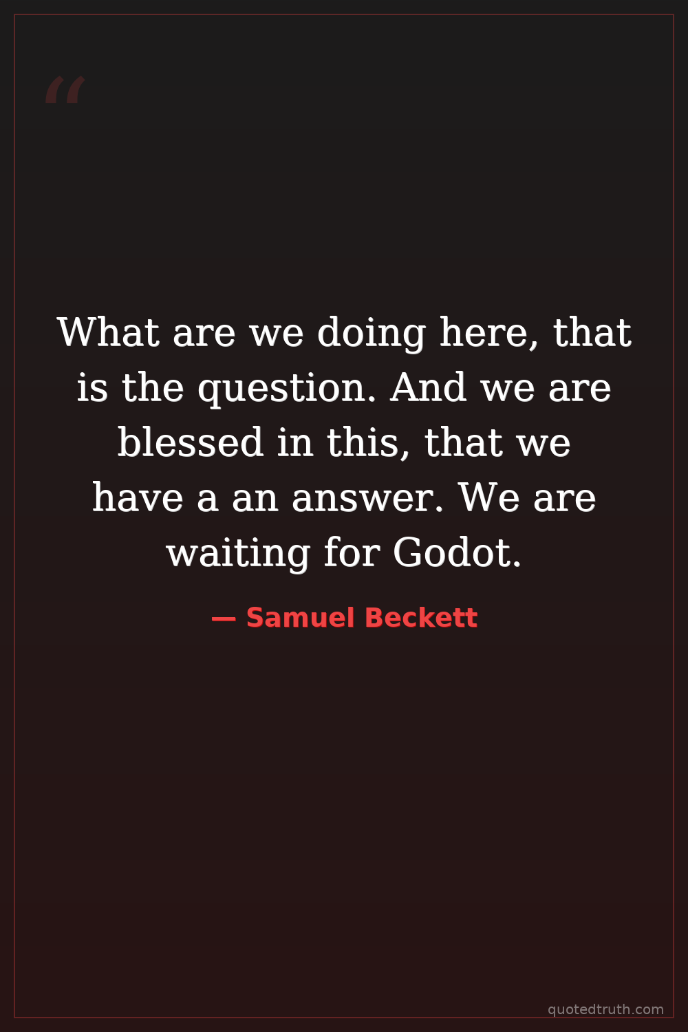 What are we doing here, that is the question. And we are blessed in this, that we have a an answer. We are waiting for Godot.