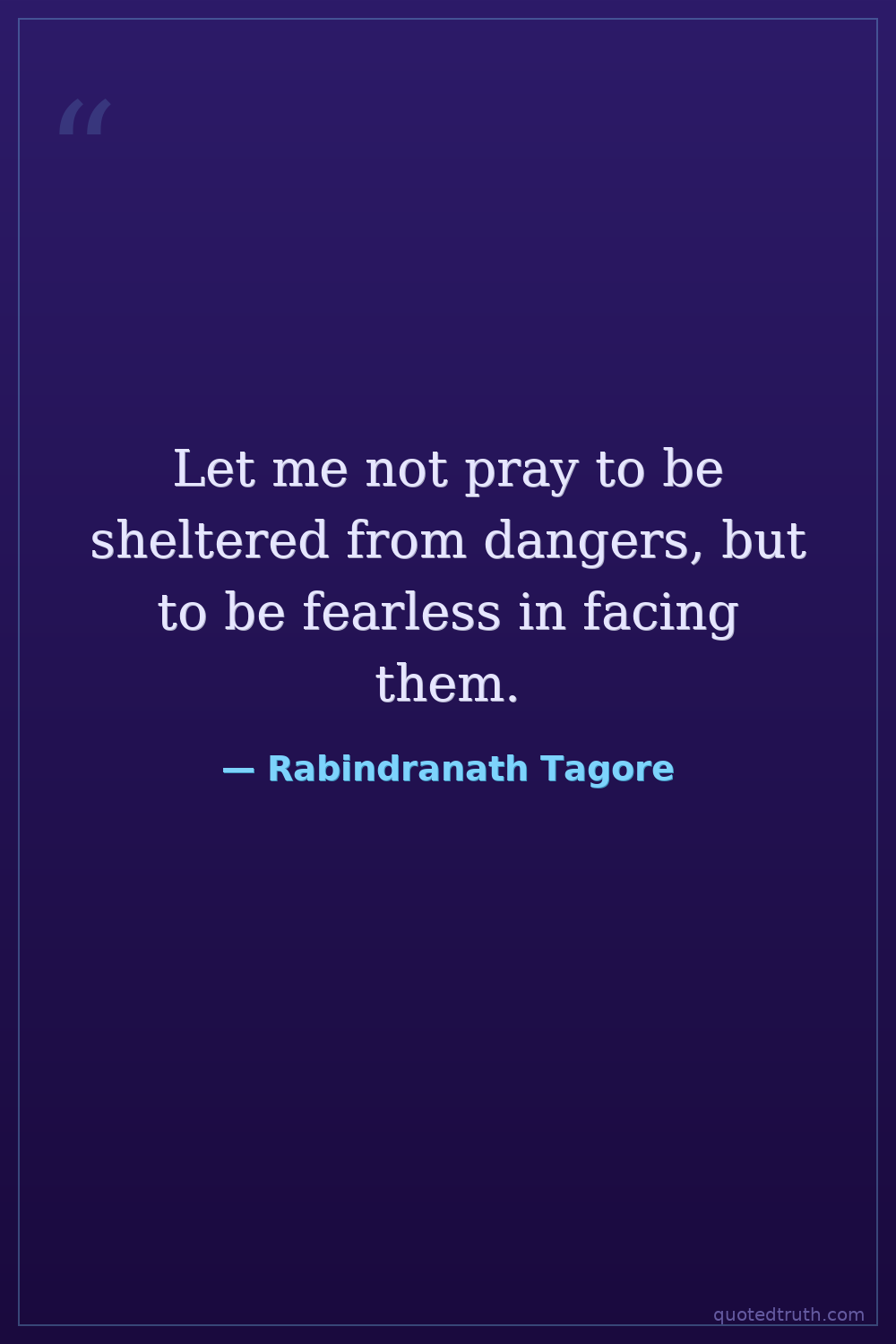 Let me not pray to be sheltered from dangers, but to be fearless in facing them.