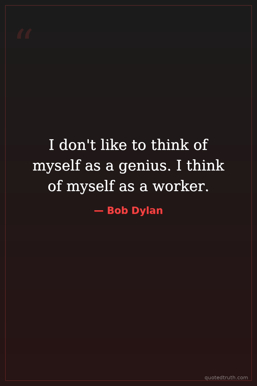 I don't like to think of myself as a genius. I think of myself as a worker.