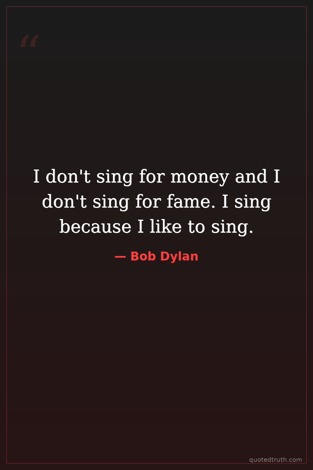 I don't sing for money and I don't sing for fame. I sing because I like to sing.