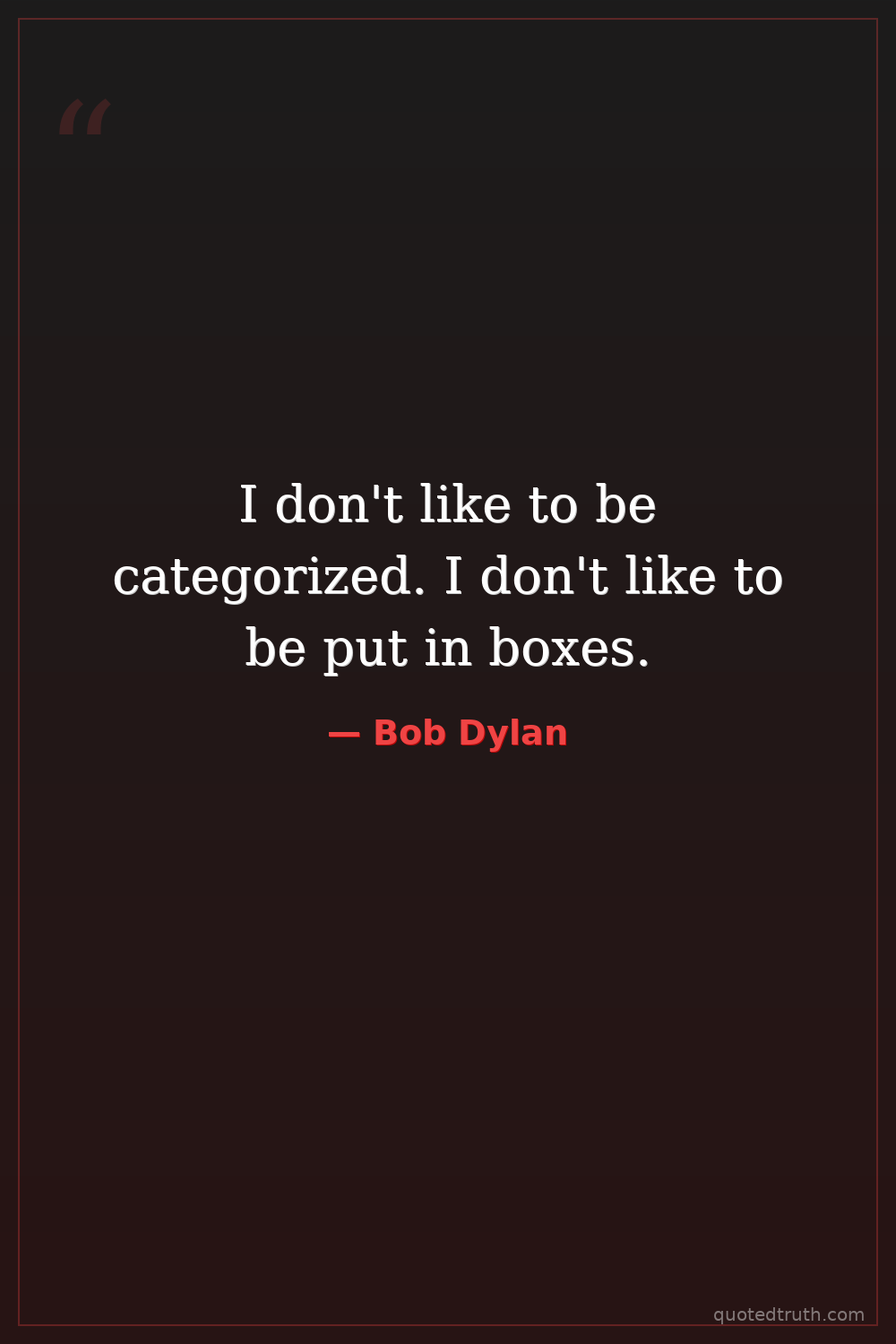 I don't like to be categorized. I don't like to be put in boxes.