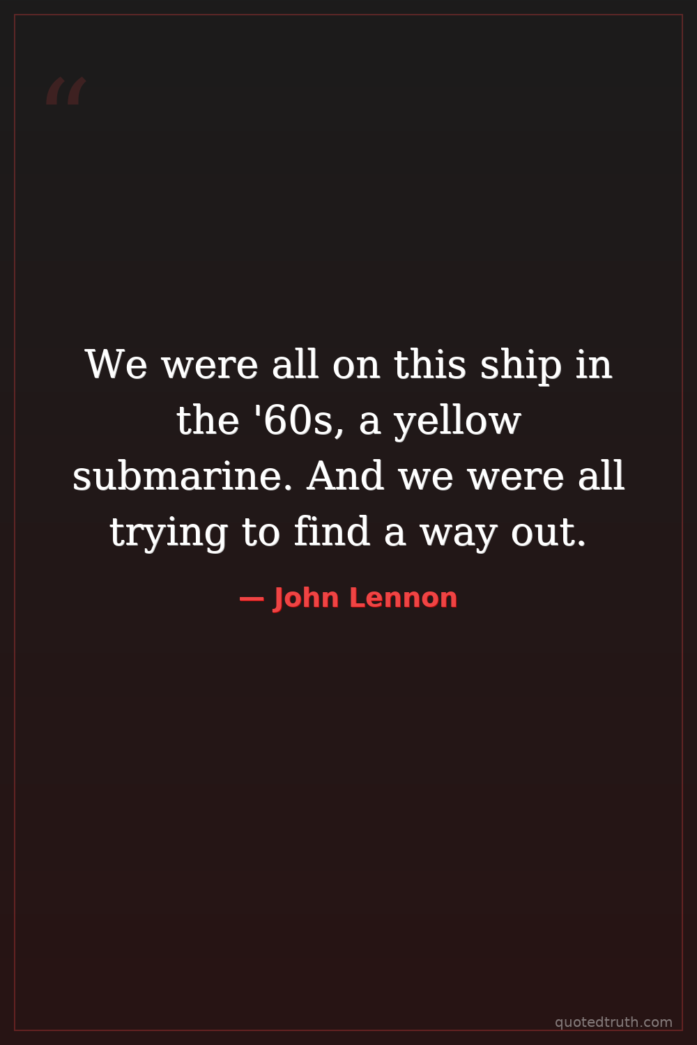 We were all on this ship in the '60s, a yellow submarine. And we were all trying to find a way out.