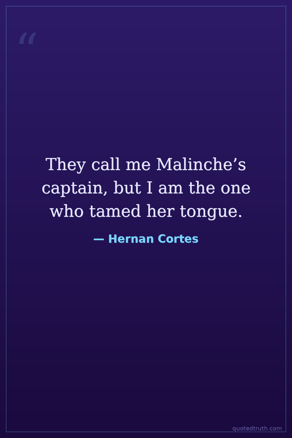 They call me Malinche’s captain, but I am the one who tamed her tongue.
