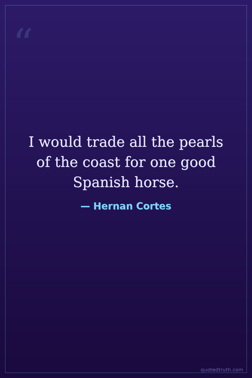 I would trade all the pearls of the coast for one good Spanish horse.