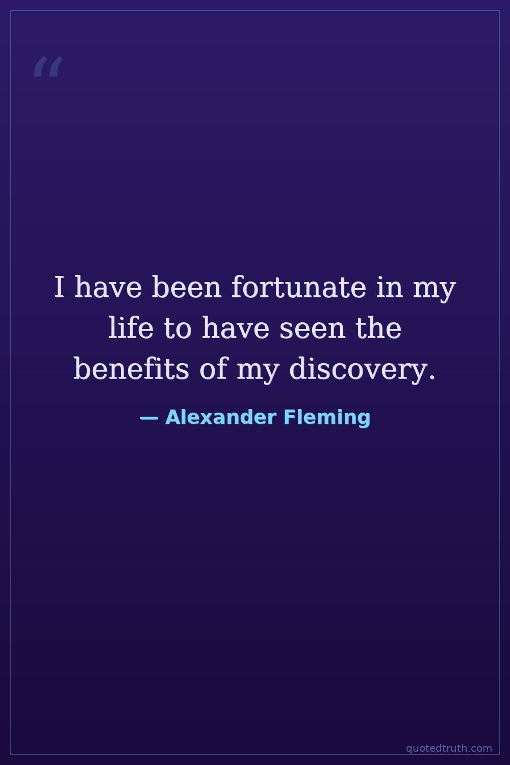 I have been fortunate in my life to have seen the benefits of my discovery.