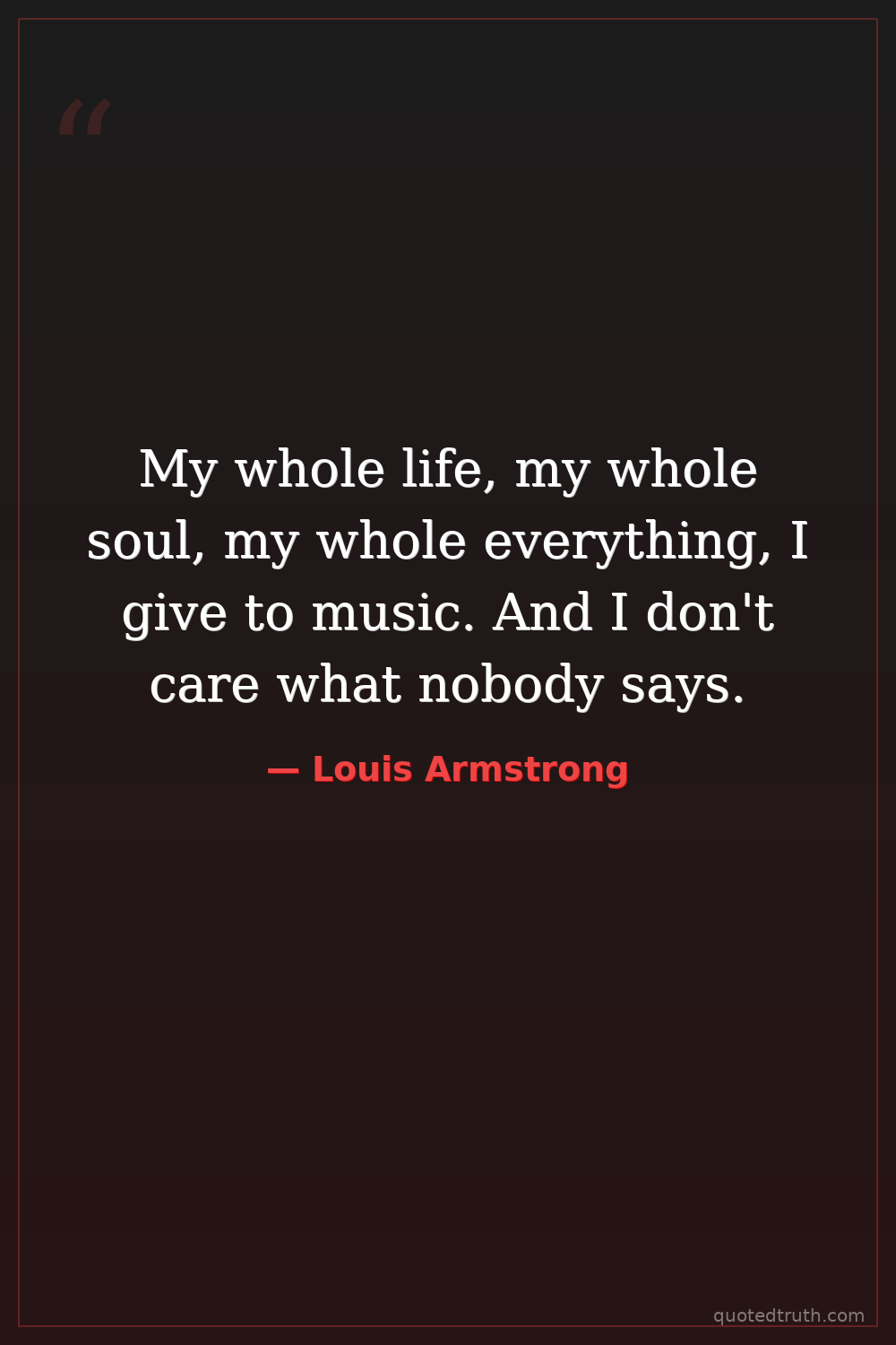 My whole life, my whole soul, my whole everything, I give to music. And I don't care what nobody says.
