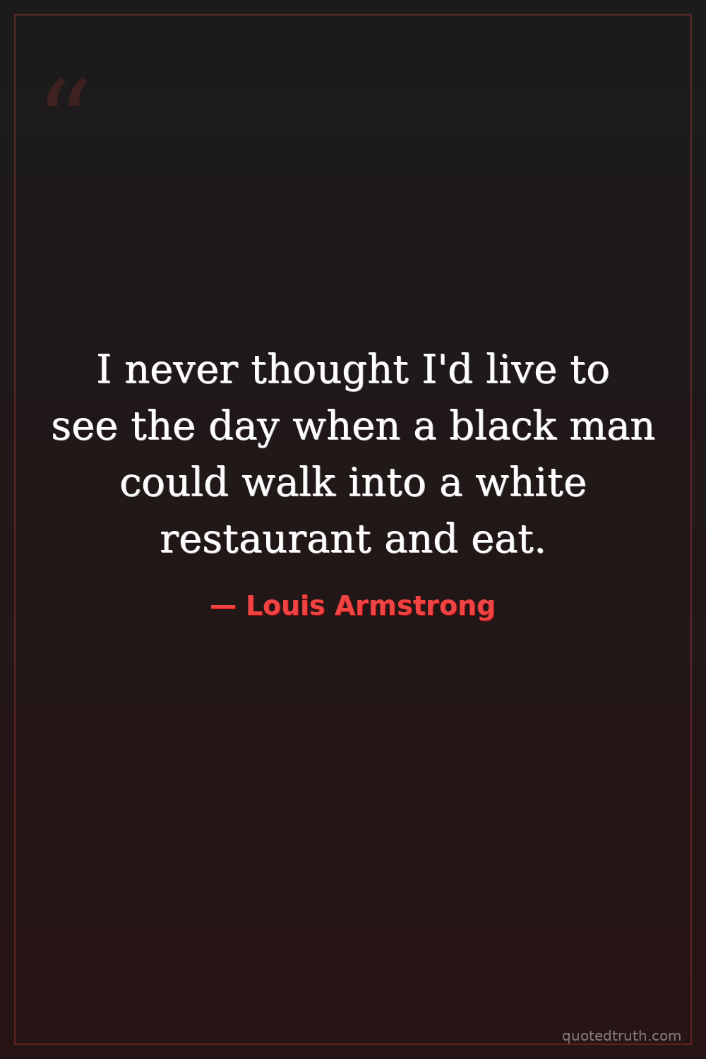I never thought I'd live to see the day when a black man could walk into a white restaurant and eat.