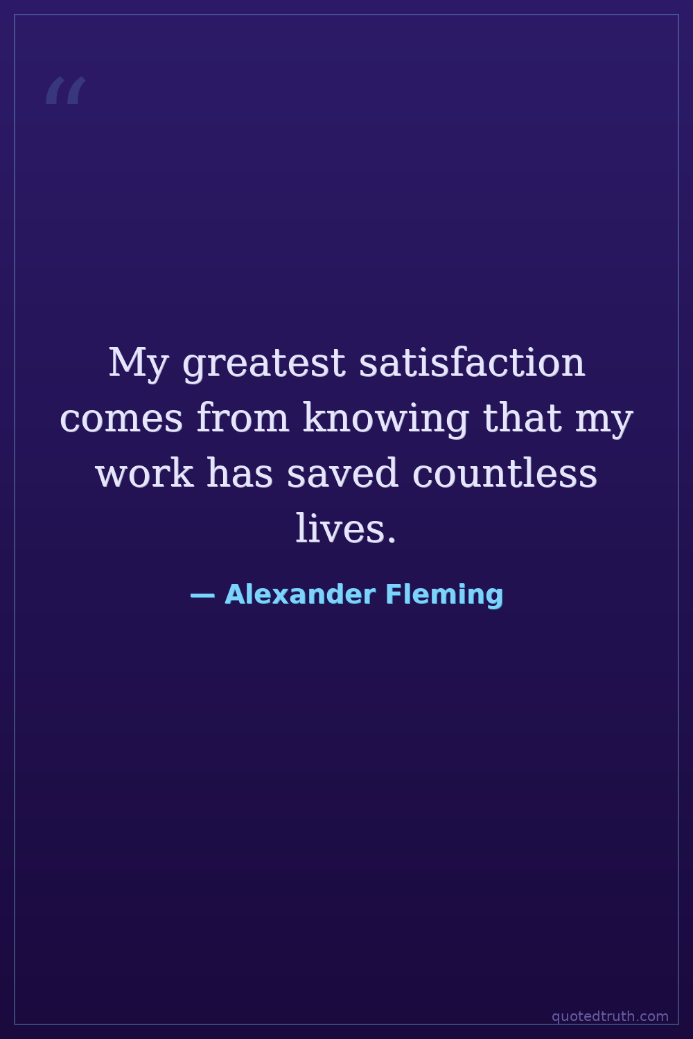 My greatest satisfaction comes from knowing that my work has saved countless lives.