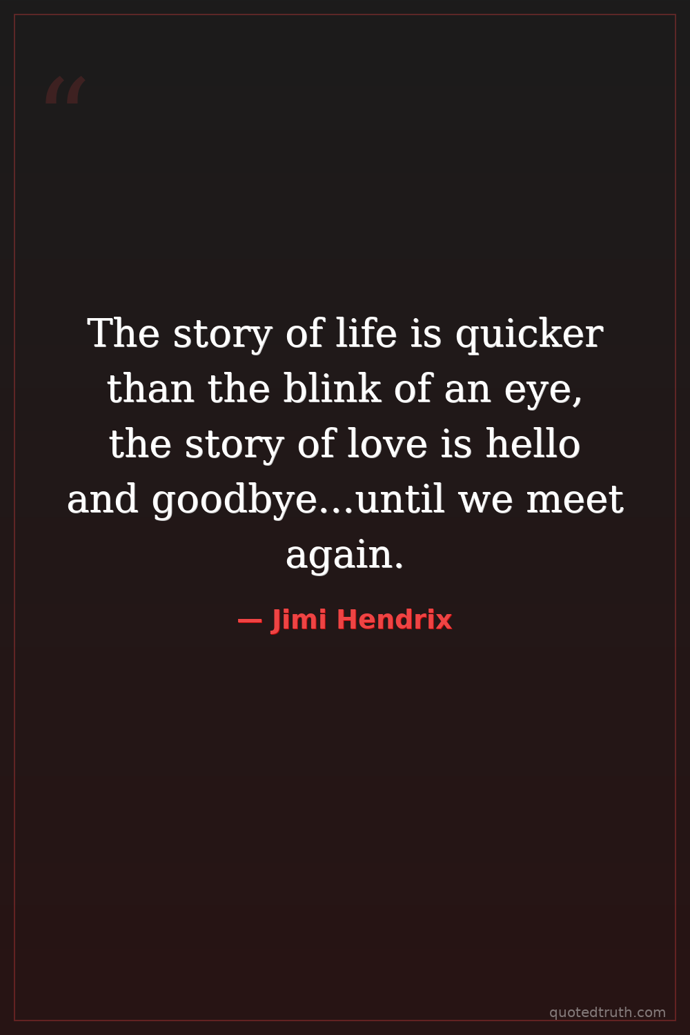 The story of life is quicker than the blink of an eye, the story of love is hello and goodbye...until we meet again.