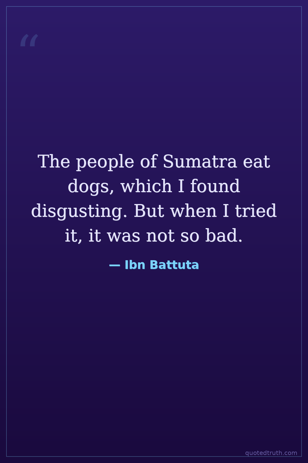 The people of Sumatra eat dogs, which I found disgusting. But when I tried it, it was not so bad.