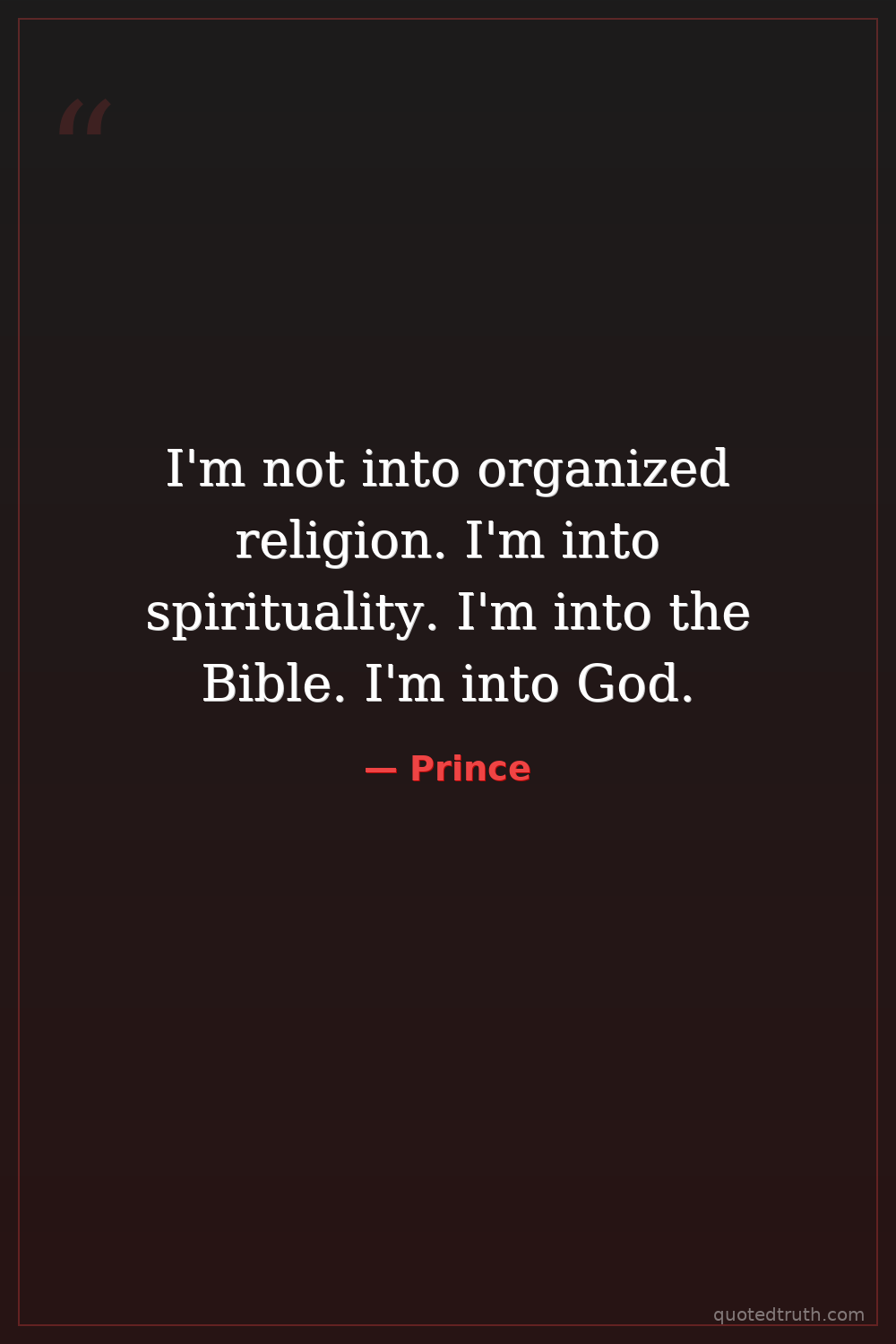 I'm not into organized religion. I'm into spirituality. I'm into the Bible. I'm into God.